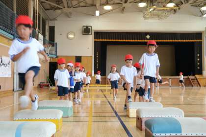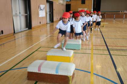 まだ挑戦している友達をちゃんと後ろの子は待っていてあげます。そして「がんばって」とか「台から降りても大丈夫」と優しく声をかけてあげます。担任の先生はそういう子どもの姿をちゃんと見ていて、「ナイス!いい声掛けだね」「優しいね」と価値づけています。