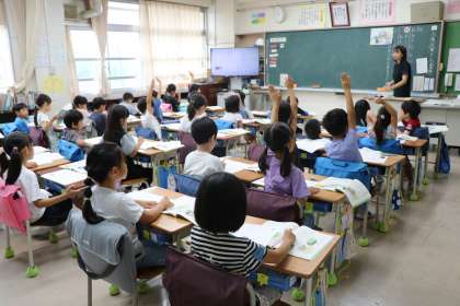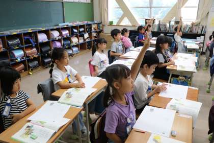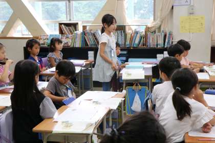 自分の考えをたくさん発表し、友達に聞いてもらってまた考える。1年生でも長文の物語文をしっかり学習しています。