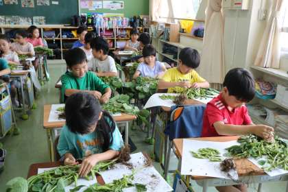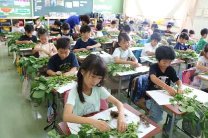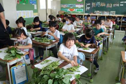 クラスごとに栄養士の先生のお話を聞き、順番に取り組みます。