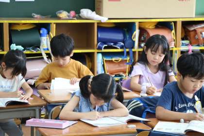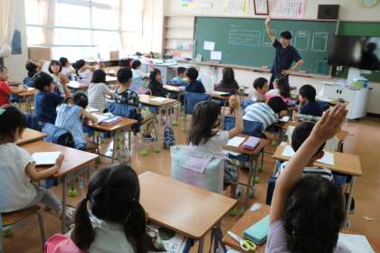 「タイヤが7つありました。4つかたづけました。残りはいくつですか。」
