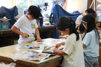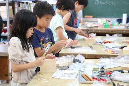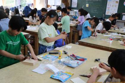くぎを打つ感触を楽しみながらトントン作品を作り上げています。