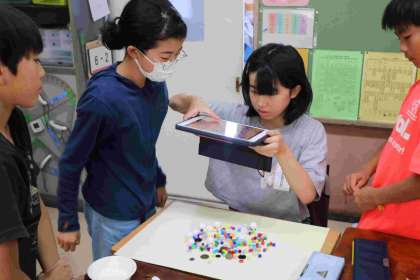 いろいろな種類の材料を並べて模様を作り、