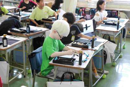 動画を見たり、縦画だけを練習するプリントに取り組んだりして上手になっていき、最後は清書です。