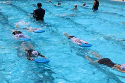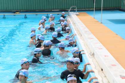 4年生の様子です。けのび、バタ足、平泳ぎの足も練習しました。