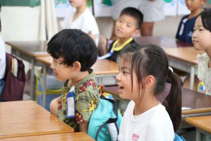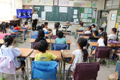先生が1年生になって見本を見せます。どこがよいところ?直した方がいいところ?みんなでよりよい話し方・聞き方を考えます。