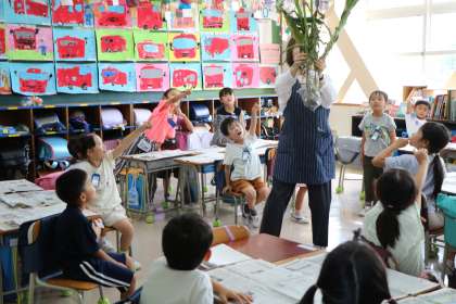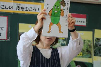 絵本も読んでもらい、トウモロコシの皮のむき方がよ〜くわかりました。