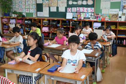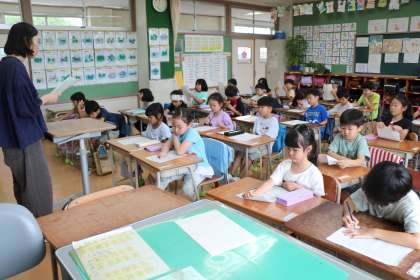 1年生の様子です。今日から来週にかけて1年生にも順次タブレットが渡されます。学級でタブレットのお約束をしっかり聞きました。家の方ともう一度確認する約束もしました。