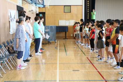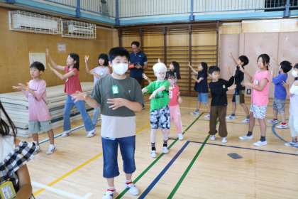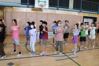 いよいよ砧っ子夏祭りまで1週間となりました。7月の土曜授業では、砧っ子夏祭りでみんなで楽しく盆踊りが踊れるように練習タイムがあります。写真は3・4年生の様子です。3・4年生はなかよし班のグループで一緒に練習です。遠足も一緒に行ったし、火曜日昼休みにはなかよし班でも遊んでいるので、すっかり仲良しです。