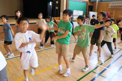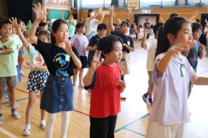 「みんなすごくよく覚えているんですね〜」と教えてくださる地域の皆様が感心されていました。「砧っ子音頭」は歌も歌えるほどです。音楽室でもイスを中央に寄せてやぐらに見たて、歌いながら踊っているそうです。