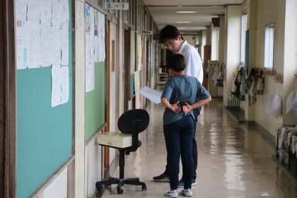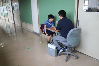 写真は5年生の様子です。夏休みの過ごし方の話をしっかり聞いてから、あゆみが配られました。