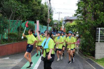 第59代鼓笛隊のパレードで幕を開けました。今年も成城警察、成城交通安全協会の方々に応援いただき、たくさんの地域の方に見守られながら演奏できました。沿道から、沿道の家の2階の窓やベランダからもたくさんの拍手を送っていただき感謝申し上げます。子どもたちの力となりました。