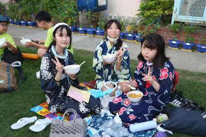 子どもたちが楽しんでいるころ、カレー作り班は大変な暑さの中、家庭科室で頑張ってくださっていました。おかげでおいしいカレーをいただくことができました。本当においしかったです。子どもたちも