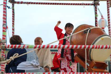 この日のために頑張ってきた太鼓っ子が、曲に合わせて力強く太鼓をたたきます。