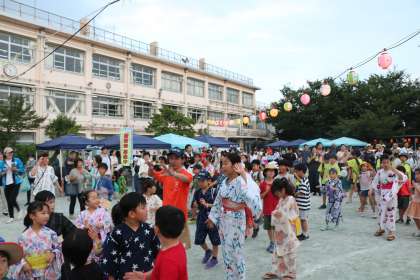 「盆踊りはいつ?」とずっと楽しみにしていた1年生も楽しそうに踊っています。