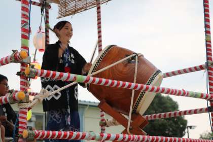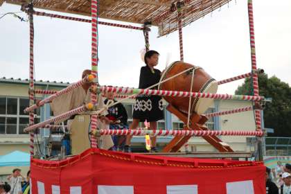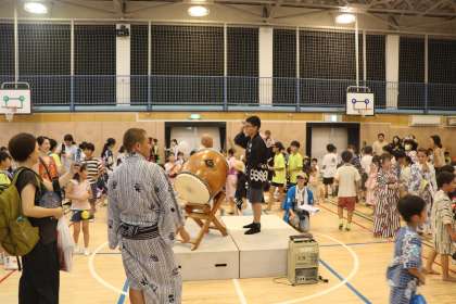 太鼓っ子も頑張ります。途中雨が降ってきたので、後半は体育館で踊りました。