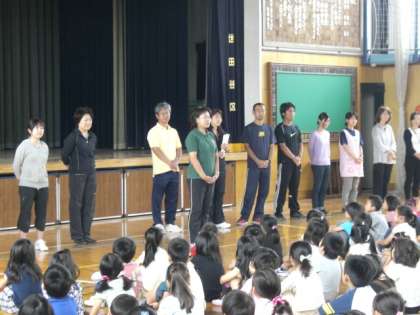 今朝は、運動会で頑張った学級の子どもたちや係の子どものことなどを、全員の先生が話しました。運動会で大きく成長した砧っ子は、さらなる目標に向かって頑張ります。