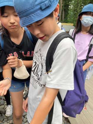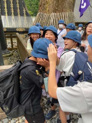 東照宮の境内は風もあり、東京のような暑さではありません。トンボがたくさん飛んでいて、子どもたちの帽子や服、指先にまでとまります。