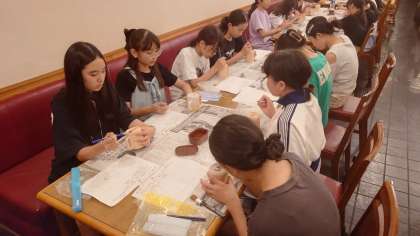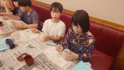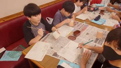 益子焼絵付け体験の様子です。