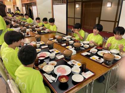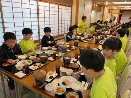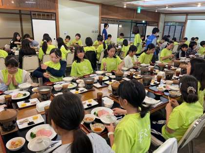 今日は時間を気にしながら、たっぷりの品数の朝ご飯を友だちと楽しみながら食べています。