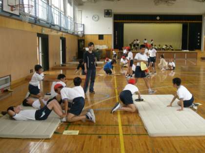 午前中に3・4年生、午後に5・6年生が体力テストを行いました。保護者の方々が、お手伝いに来てくださいました。