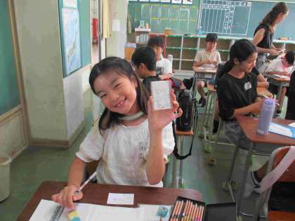 デザインとは何かについて学び、名刺作りに挑戦しました。フォントの大きさ、色の使い方。イラストの配置の仕方など想像を広げて作成しました。世界で一つのオリジナル名刺の完成です。