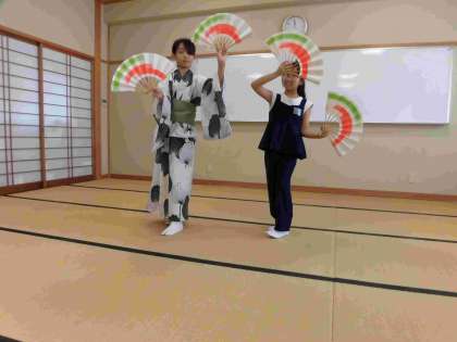 優しい講師の先生のご指導で、扇子をいろいろな物に見立てて踊りました。
