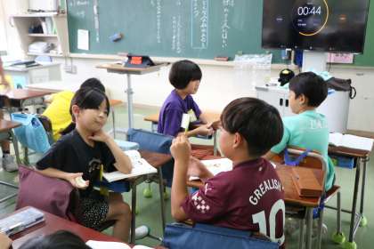 3年生の様子です。学期初めに係決めをすることとちょうど合う国語の教材です。自分の意見を聞いてもらい、どんな係がクラスに必要かみんなで考えます。