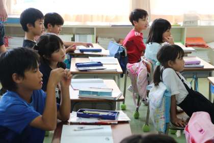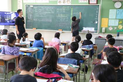 一生懸命自分の考えを発表する友達を応援する気持ちで聞く学級の雰囲気がすてきです。