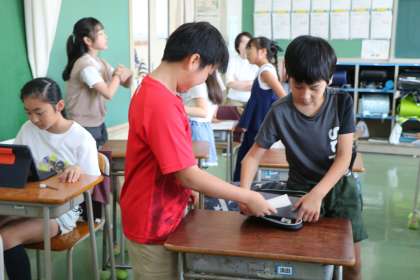 5年生クラスの係活動の様子です。クラスのみんながより楽しく、気持ちよく生活できるための係活動を考えています。子どもならではの発想に感心します。