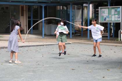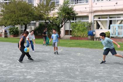 互いに声をかけあって、だんだん上手に縄に引っかからなくなったりボールがつながったりしてきます。