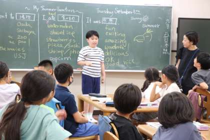 日本語で思い出を伝えるのとまた違うワクワク感が伝わるようなスピーチでした。スピーチする子は英語で言うのでドキドキですが、周りの友達がとても温かく聞いてくれるので、安心して英語でしゃべれます。