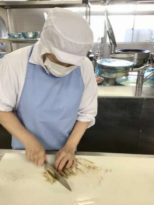 3枚目の写真は沢煮椀の具のごぼうを千切りにしているところです。沢煮椀にはごぼうの他にもたくさんの野菜が入った具沢山の汁物です。かつおだしと野菜のうまみがたっぷりのおいしい沢煮椀ができました。