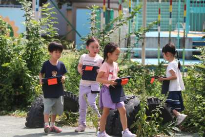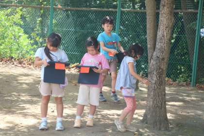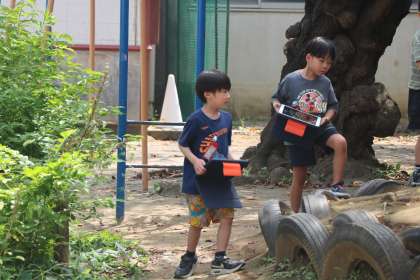 初めてのタブレットを使った学習です。生活科の学習「かくれているいきものはなあに」で生き物クイズを作ります。その材料となる虫や植物を写真に撮っています。どんなクイズができるか楽しみです。