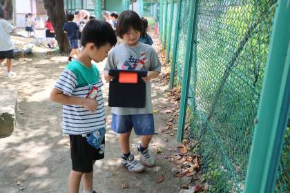 子どもたちは互いに撮影したものを見せ合ったり、教えあったりとっても仲良く学習を進めています。