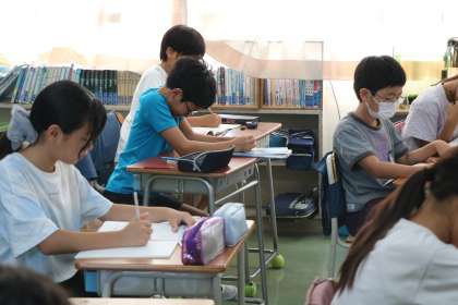 5年生算数の様子です。「図形の角」についてのまとめ問題に集中して取り組んでいます。