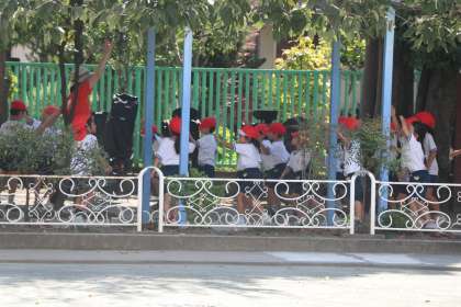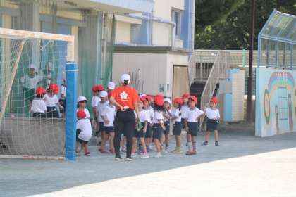 1年生の体育も同様です。水分補給も忘れません。