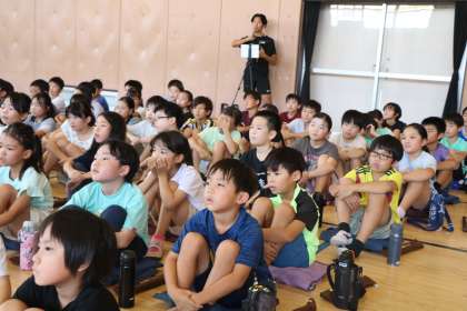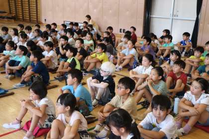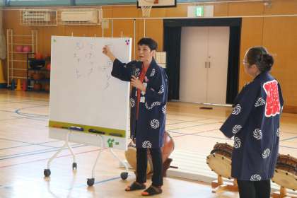 締め太鼓のリズムを教えていただきます。お囃子は楽譜があるわけではありません。口伝なのです。