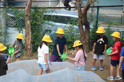 まだ暑いですが、2年生、頑張って大切に育ててくれています。1学期に鉢で野菜を育てた経験が生きているのかもしれません。