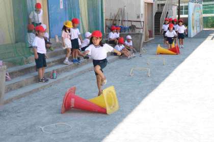 飛び越すものをどうやって置いて走りたいか、考えを出して活動を工夫できました。
