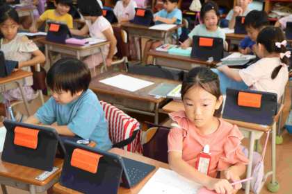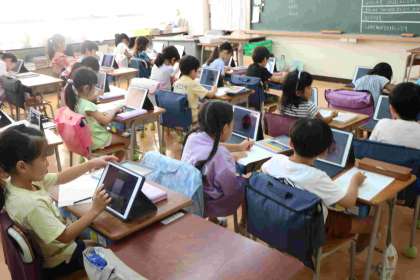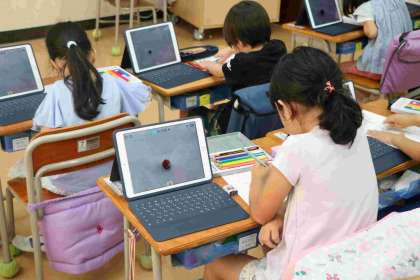 1年生も学習でタブレットを使うことに少しずつ慣れてきています。