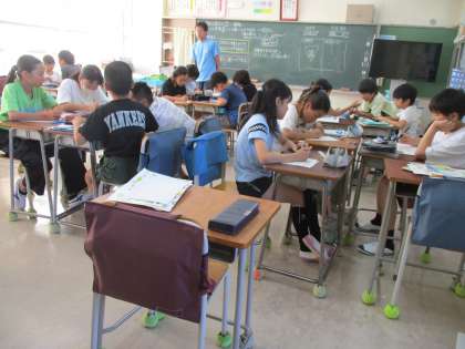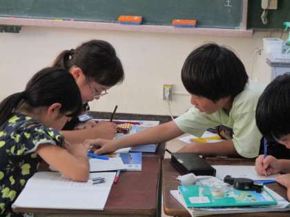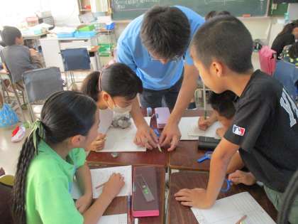 5年生理科の様子です。班ごとに花の仕組みを調べています。