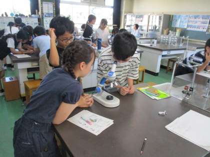 実物の花を肉眼で見た後は、顕微鏡でも見てみます。