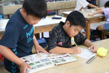 3年生図工の様子です。今日から新しい作品に取りかかるので設計図を描いています。早く作品をやりたくて楽しみな気持ちが伝わる図工室の雰囲気でした。
