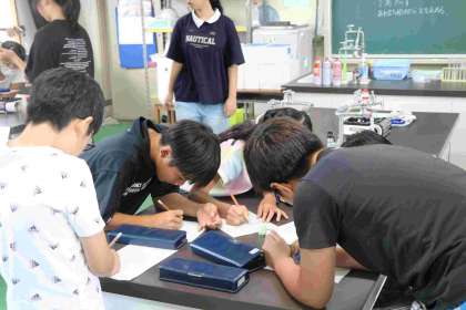 実験終了後は、結果の共有と記録をグループで協力してできました。