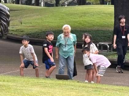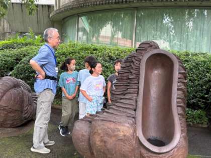 屋外にも作品がありました。今週受けた特別授業で見た作品を見つけると大喜びです。