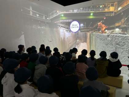 ゴミ最終処分場に着きました。まずは映像を見ながら学習です。