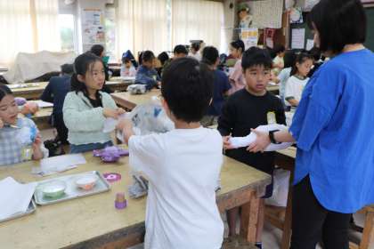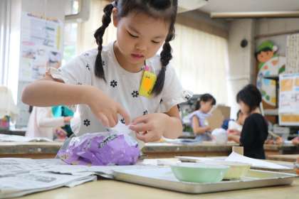 段ボールで羽をつけたり頭をつけたり・・・楽しそうです。