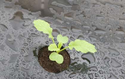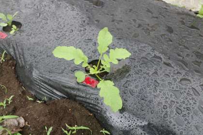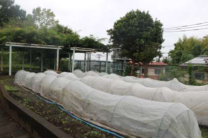 今朝の畑はこんな様子です。ハート形の芽も順調に大きくなっています。まだ芽が出ないところもちらほら・・・