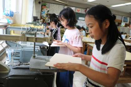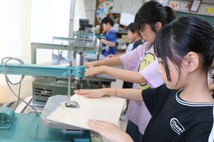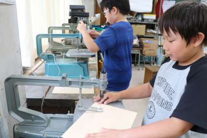 5年生図工の様子です。電動糸のこぎりも安全に上手に使えます。