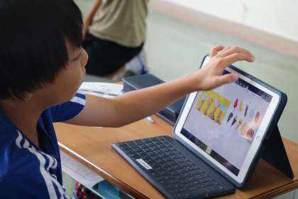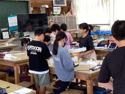 イニシャルを決めて計画を立てたら、次の時間は図工室に戻りいよいよイメージを形にしていきます。イニシャルの素材は発泡スチロールです。どんな作品になるか楽しみです。